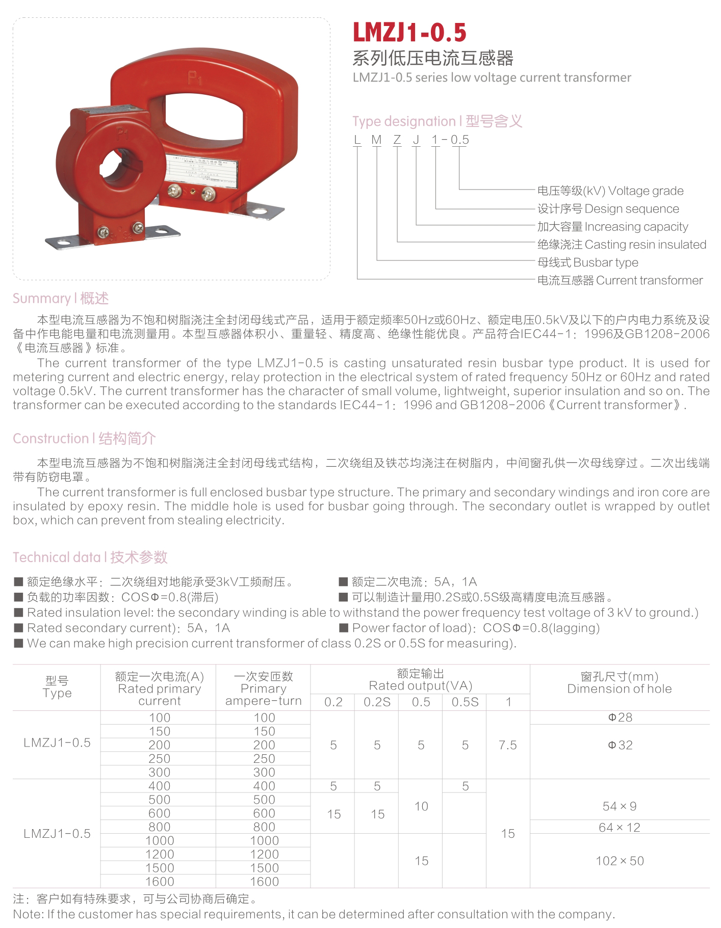 LMZJ1-0.5系列低壓電流互感器