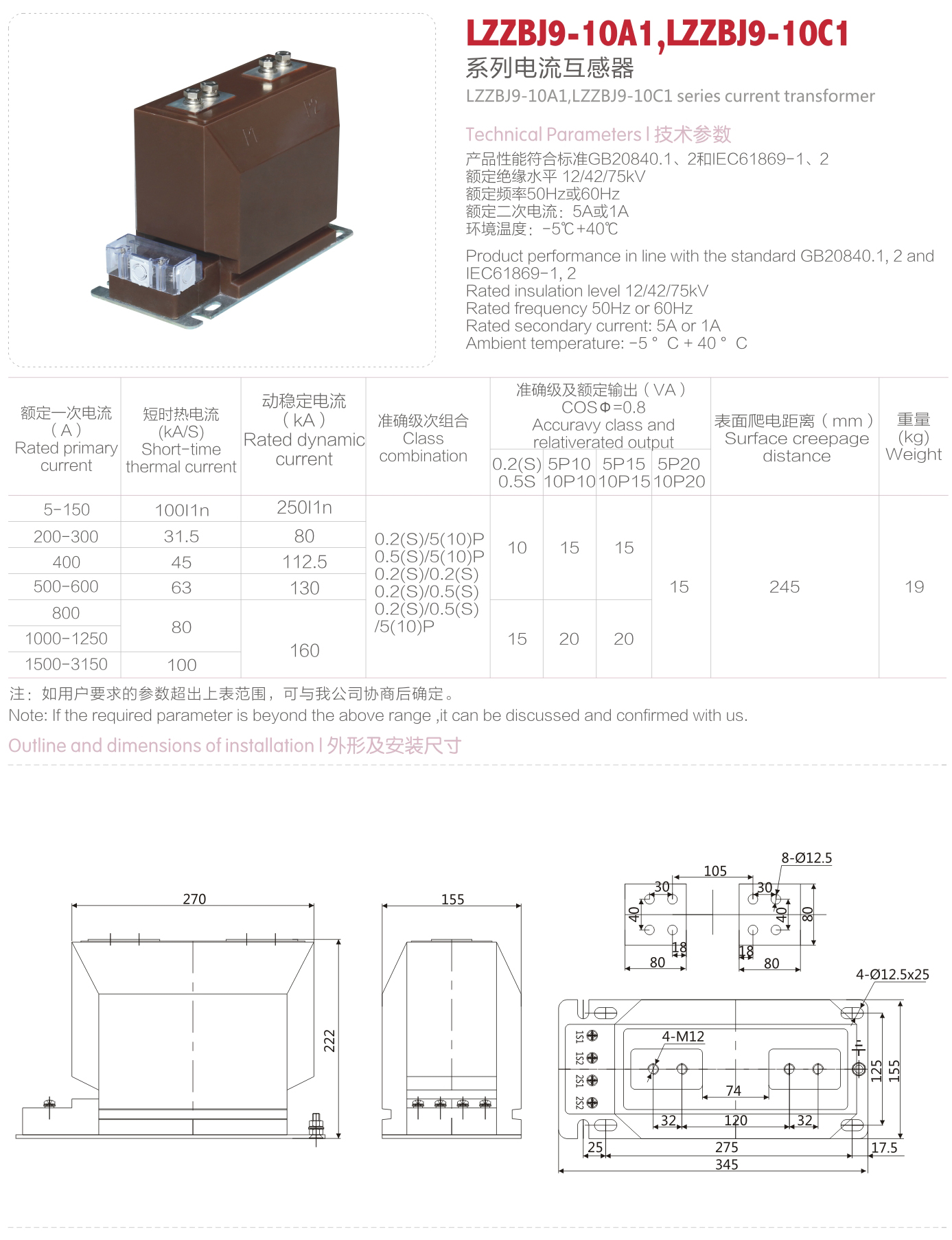 LZZBJ9-10A1,LZZBJ9-10C1 系列電流互感器