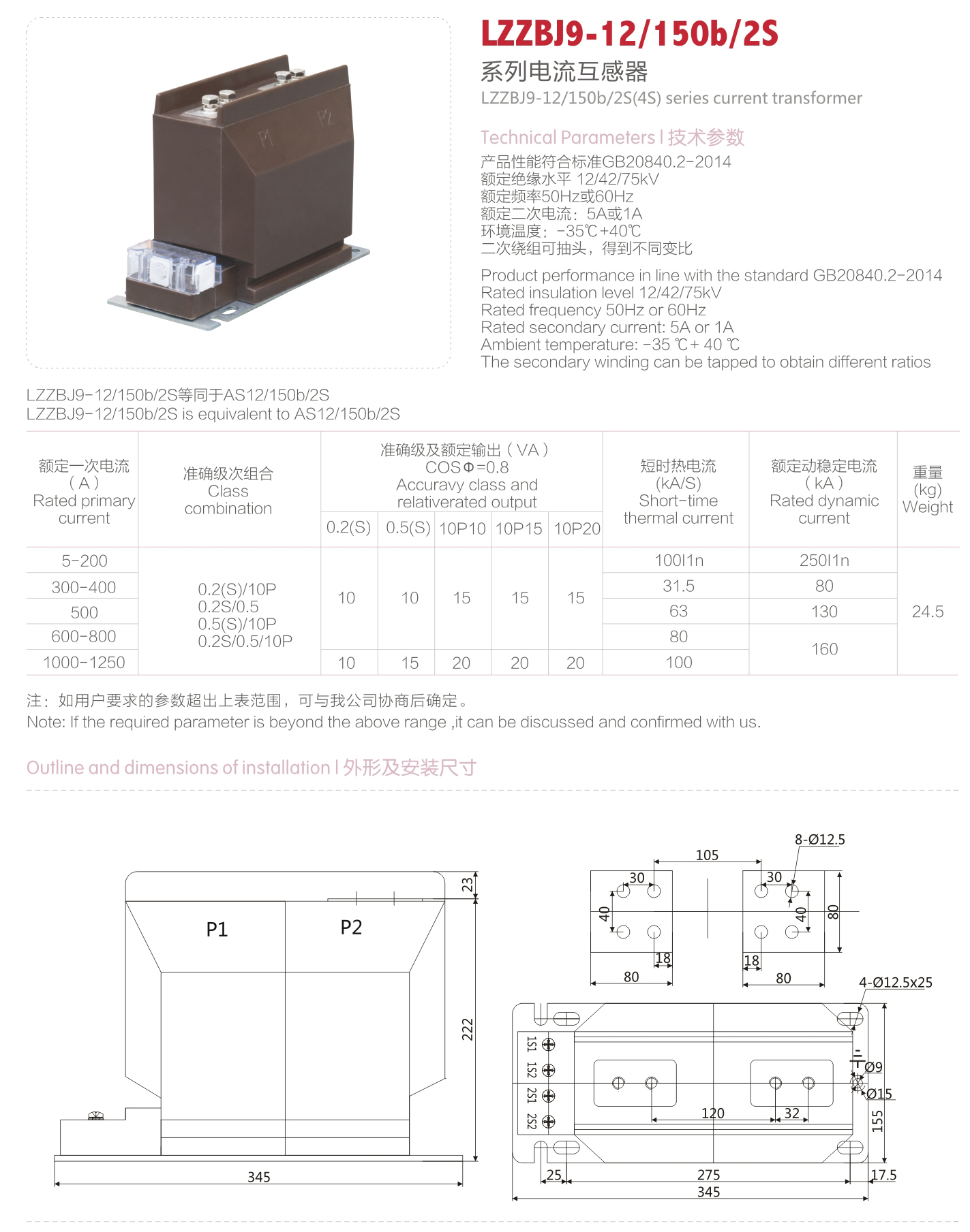 LZZBJ9-12/150b/2S系列電流互感器