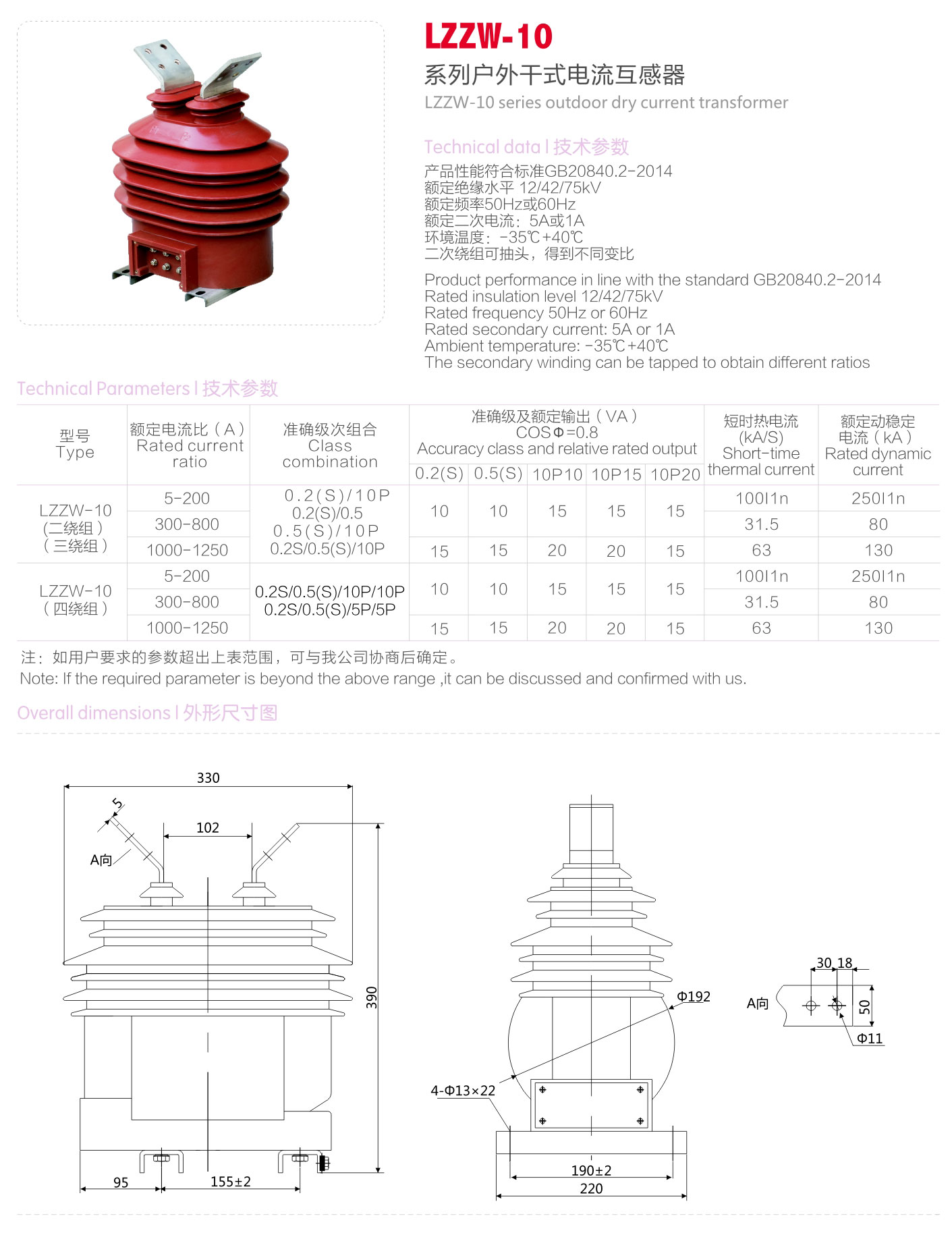 LZZW-10系列戶外干式電流互感器