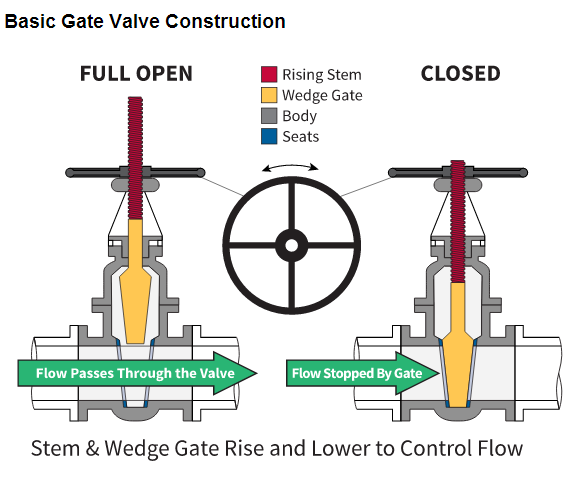 柵極通過移動楔形盤上下障礙物打開和關(guān)閉通過閥的流動路徑。這種線性運(yùn)動通過桿螺紋上升。轉(zhuǎn)動該螺紋桿需要多次旋轉(zhuǎn)(多圈)從打開至關(guān)閉。轉(zhuǎn)速所需的閥尺寸通常是在3英寸X+2。因此將需要6英寸的閥20的芯柱(6)3[x+2]=20。它們應(yīng)當(dāng)僅用于開/關(guān)應(yīng)用,節(jié)流了較長時(shí)間,會損壞所述障礙物并密封。使用的閘閥節(jié)流還不是非常有效,因?yàn)榇蟛糠值牧髁繉⒃鲩L10%。
