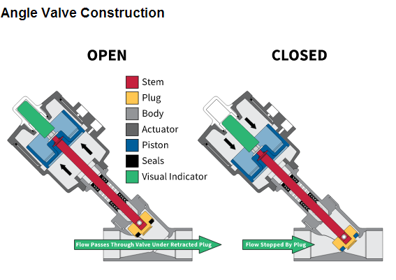 座椅角度的閥位置的閥2與內(nèi)置的氣動執(zhí)行器。所述致動器可以被返回彈簧作用或雙作用的。脫膜劑為插頭進(jìn)入閥角度坐在傾斜座椅模制到所述閥的流動路徑。所述插頭被幾乎完全縮回時(shí)的流動路徑打開。這一因素使座椅角度閥門的最高流量快速作用閥具有最低的壓降。在許多應(yīng)用中打開/關(guān)閉,閥座的閥角度的完美替代品。他們采取快、成本更低并且持續(xù)時(shí)間更長。